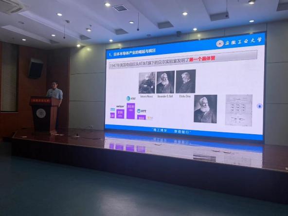 第二场讲座由安徽省光学会激光专委会委员丁守军副教授主讲,主题是“漫谈半导体科技发展史”,在报告中丁教授带领同学们回顾了半导体芯片制造的核心技术——光刻机的发展历史。他从科技、经济和政治等多个层面分析了美国、日本、荷兰的光刻机巨头在光刻机发展历史上的成败得失,并强调其中的经验教训对每位听众都值得深思。这场讲座使同学们了解了半导体科技的发展过程,对光刻机的重要性有了更深刻的认识,也对半导体行业的发展前景有了更清晰的了解。