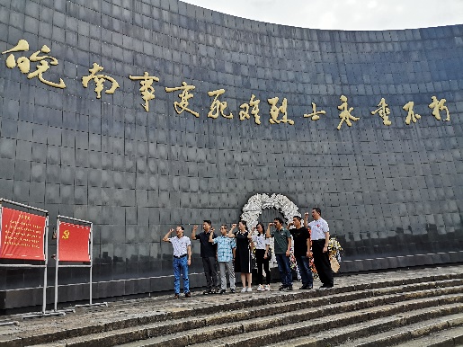 在泾县皖南事变烈士陵园纪念广场,大家怀着一颗无比崇敬的心,列队向革命烈士默哀、鞠躬,深切缅怀革命先烈丰功伟绩。全体党员面对鲜艳的党旗,重温入党誓词,加强党性意识,坚定理想信念。