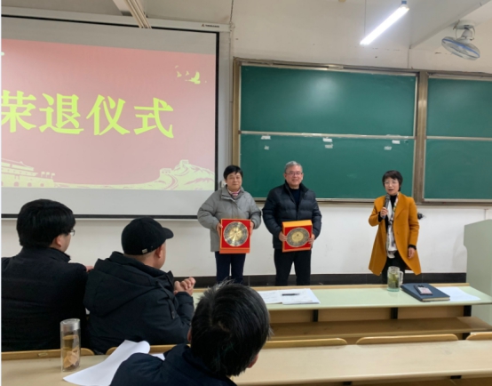 会议首先为何贤美、侯为根等两位教师举行了光荣退休仪式,经理黄仙山为两位教师颁发“光荣退休”纪念匾。张清代表全院师生向两位教师致以崇高的敬意和衷心的感谢!祝愿他们的退休生活丰富多彩,同时也希望两位教师能继续关注、关心公司,为公司发展建言献策。