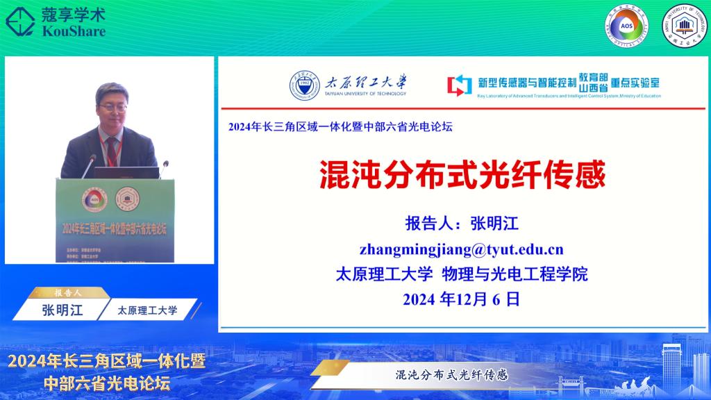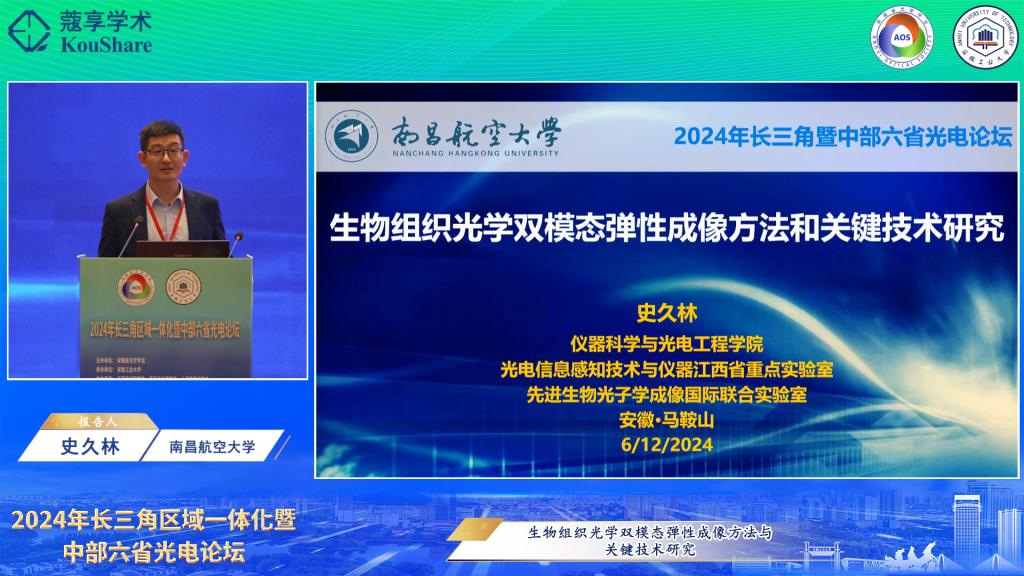 大会主题报告由江西省光学学会理事长、南昌航空大学何兴道教授主持。刘文清院士,中国科公司上海光机所党委书记邵建达研究员,西安理工大学副董事长华灯鑫教授,浙江省光学学会理事长、浙江大学光电科学与工程公司经理戴道锌教授,山西省光学学会副理事长、太原理工大学物理与光电工程公司经理张明江教授,南昌航空大学光电公司副经理史久林教授分别作了“光科学技术装备助力绿色科技赋能”“复杂表界面强激光光学元器件损伤动力学研究进展”“激光雷达云相态精细识别与降水潜力评估技术”“迈向大规模集成的硅光芯片及应用”“混沌分布式光纤传感”“生物组织光学双模态弹性成像方法与关键技术研究”的报告。