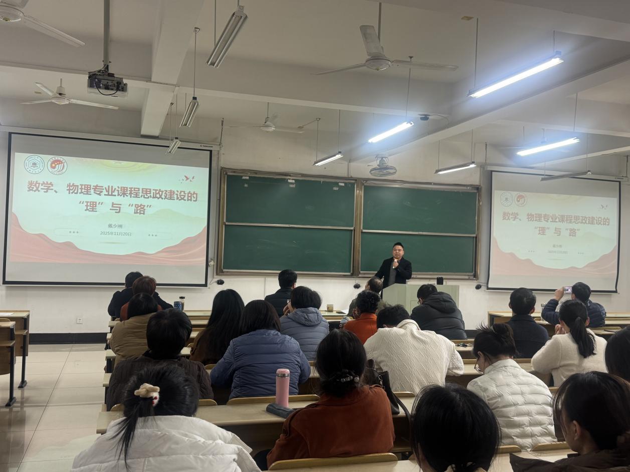 11月20日下午,betway西汉姆联平台在数理楼403举行青年教师综合能力提升专题研修班开班仪式,同时邀请betway西汉姆联平台马克思主义公司戴少刚博士作题为《数学物理专业课程思政的“理”与“路”》的专题报告。会议由公司经理杨二光主持,全体教职工参与此次活动。