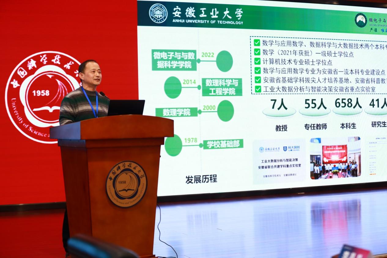会上,安徽省数学学会理事长、中国科学技术大学数学科学公司经理黄文致开幕词,合肥工业大学、安徽大学、安徽师范大学等15所高校数学学科所在公司党委书记或经理进行交流发言。期间,与会代表参观了中国科学技术大公司史馆和数学科学公司。
