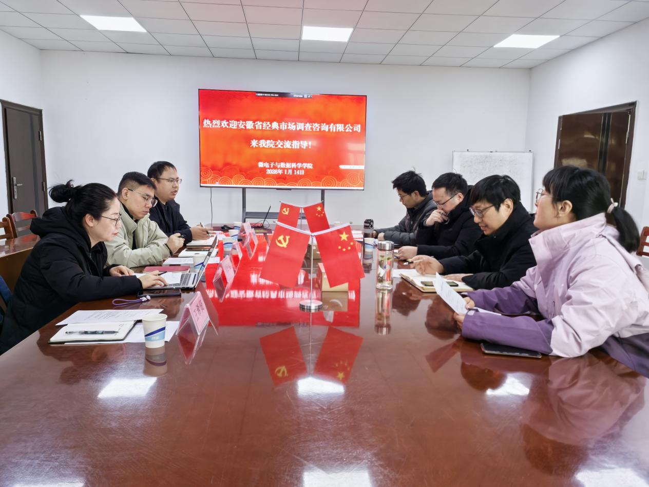 安徽经典市场调查咨询有限公司深耕市场调查与咨询服务领域多年,掌握了海量的市场调查数据,是国家高新技术企业和安徽省大数据企业。交流会上,公司副总翟奇林介绍了公司的主营业务、发展战略以及人工智能时代背景下新的问题和挑战,希望与公司在人才培养、数据应用、标准制订、科研合作等方面开展交流合作。李勇副经理介绍了公司教师科研服务的主要方向,表示高校愿意利用自己的科研优势为企业提供优质的研发服务,帮助企业解决难点和痛点,推动企业的快速发展。经过与会人员的深入交流,最后,双方就发布联合攻关课题、共建共享多模态数据协同研发平台、订单式人才培养等达成了初步意向,拟定了下一步的重点工作安排和时间节点。