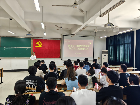 6月16日,微数公司在数理楼403为2025年上半年新发展党员举行入党宣誓仪式。公司党委书记汪春胜、党委副书记张敏、员工支部书记及全体员工党员参加了宣誓仪式。