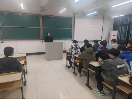 宣誓仪式在庄严的《国际歌》中拉开帷幕。张敏宣读公司党委关于党员发展和转正的批复。面向鲜红的党旗,全体新党员和老党员起立,在微电子本科生党支部书记张佳良的领誓下,举起右手,庄严宣誓,表达对党的忠诚、为共产主义事业奋斗终生的决心。随后,汪春胜、张敏以及各支部书记一一为新党员佩戴党员徽章。光电工程系党支部、教师许瑞醒作为新党员代表发言,表达了光荣入党的激动心情和锐意进取、无私奉献的决心。微电子本科生党支部、微C211班员工张超作为老党员代表发言,表达了对新党员的祝贺、回顾了入党的初心、提出了发挥模范作用的期冀。