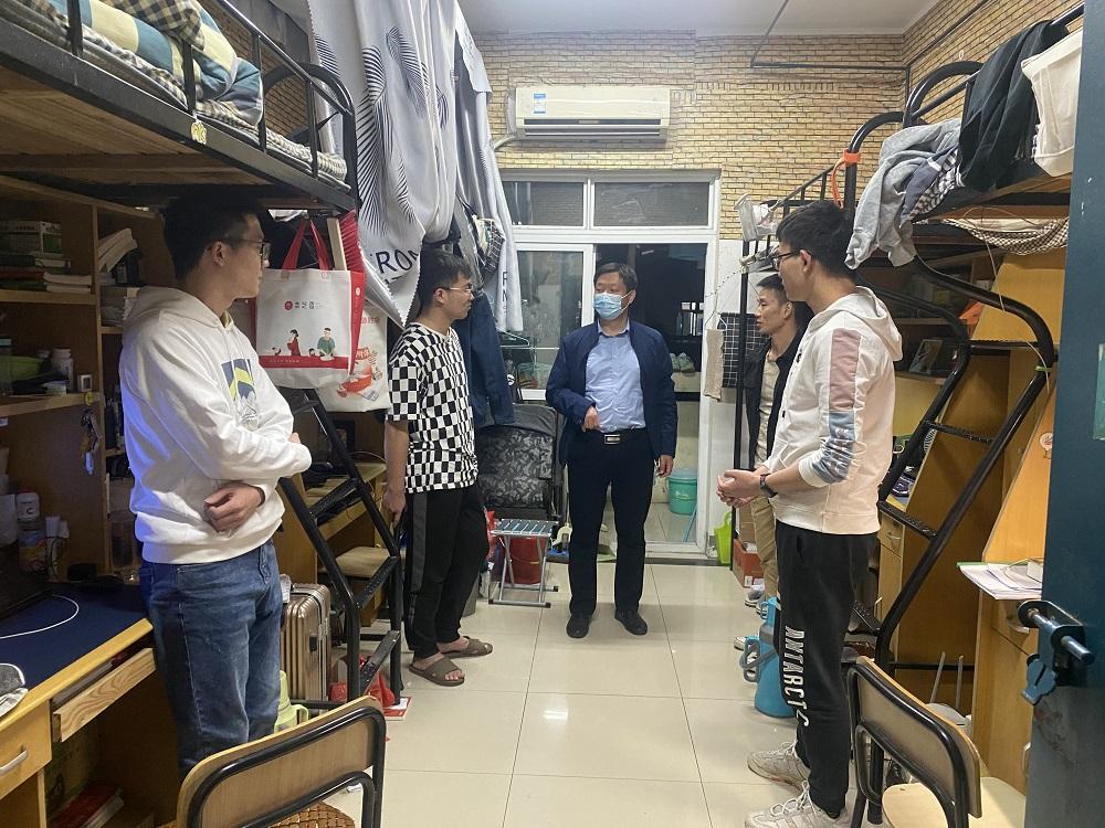 4月20日晚,数理科学与工程公司经理黄仙山带领各年级辅导员深入宿舍,走访慰问在校员工,进一步了解疫情防控期间各年级员工的思想动态和学习生活情况。