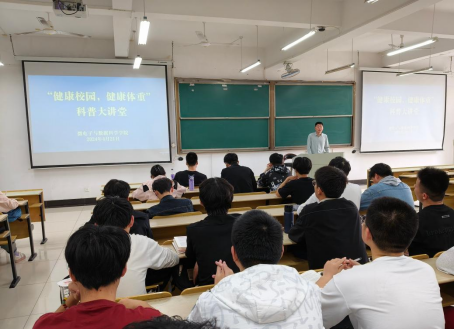 为深入贯彻习近平总书记关于爱国卫生运动的重要指示精神,4月21日下午,微数公司在数理楼403开展“健康校园,健康体重”科普大讲堂,辅导员张佳良主讲,各年级员工代表参加。