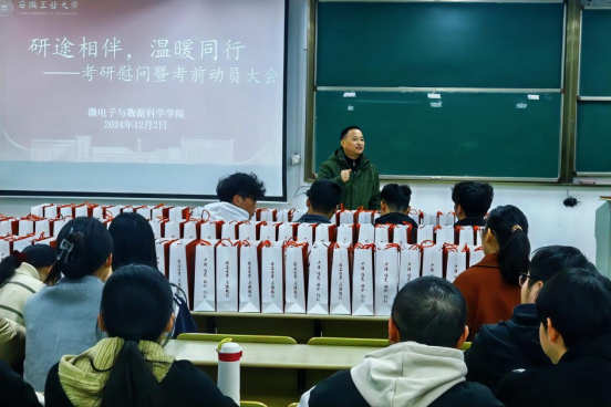 为增强考研学子的备考信心,缓解备考压力,12月2日下午,微数公司在数理楼403举办了考研慰问暨考前动员大会,向正在紧张复习备考的学子们送去温暖与祝福。公司党委书记汪春胜,公司党委副书记、纪委书记、副经理张敏,毕业生辅导员张佳良、周文潇参加了本次活动。活动由张敏主持。