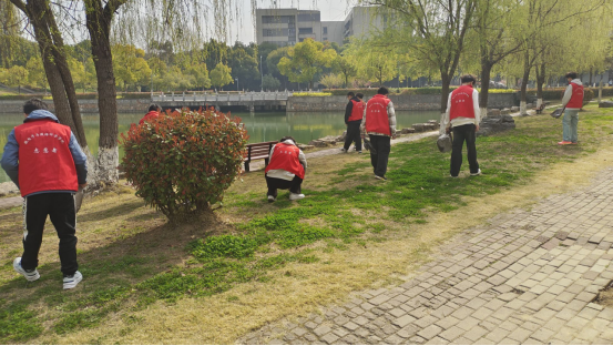 活动现场,志愿者们热情高涨,他们的身影活跃在校园的每一个角落。志愿者们分工明确、配合默契,有的俯身清理砖缝杂草,有的细心分拣杂物垃圾,有的来回搬运枯枝落叶。经过近两小时的忙碌,教学楼周边的花圃焕然一新,整洁有序的环境为校园增添了一抹亮色。