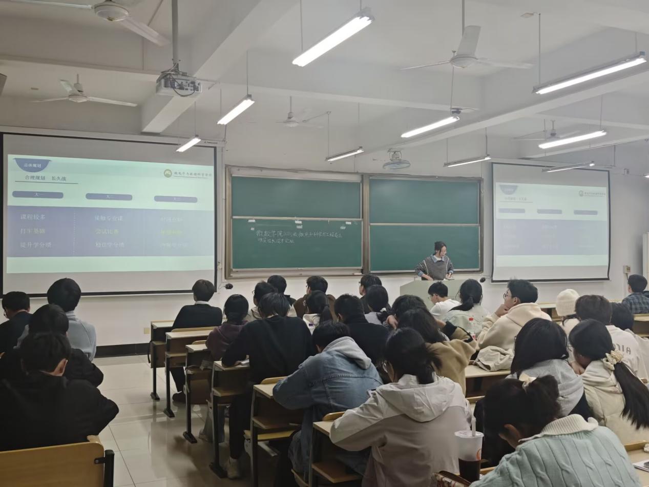 分享会上,刘文杰聚焦保研核心要素,系统拆解了绩点提升学习方法、科研经历积累路径、推荐信准备实用技巧等关键环节。叶青则梳理了适配微电子科学与工程专业的竞赛体系,从“挑战杯”、“互联网+”等综合性赛事到学科专项竞赛,逐一解析不同竞赛的备赛重点、时间规划与能力要求。针对新生普遍关注的课程学习问题,两人还分享了高效笔记整理、期末复习策略、跨学科知识拓展等实用技巧。